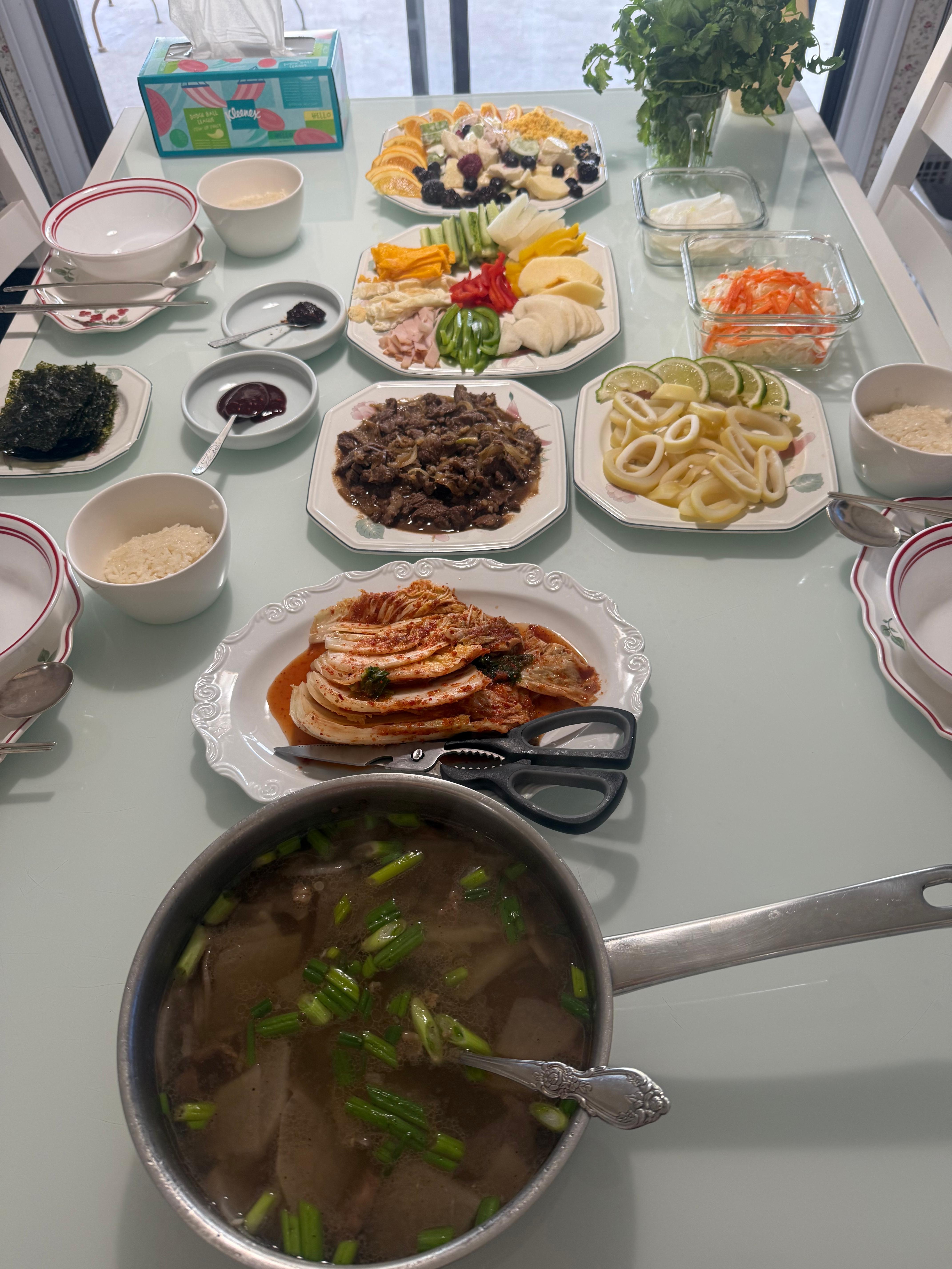 상 차리지 말고~ 어제 샘스에서 사놓은 소고기로 아들 고기나 궈 주고 말라고~